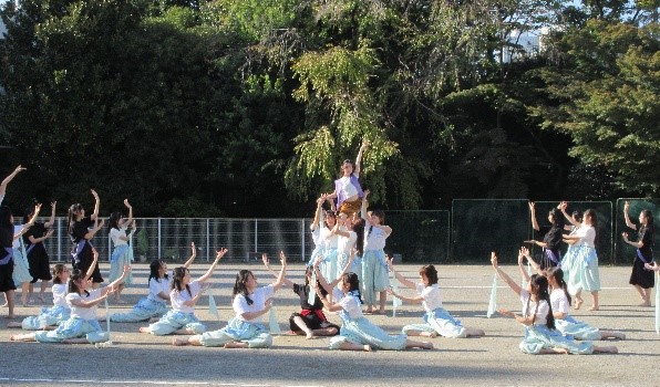 今年度の輝鏡祭のテーマ「Charm」をもとに各クラスで題目を決め、振りや構成、音源、衣装などすべてを一から生徒が作りました。中間考査後から1か月もない中での開催でしたが、合間をぬって練習をし、当日は各クラスそれぞれのCharm輝く演技を披露しました。