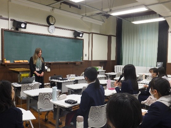 Dr. Karmstrandは、ご出身のスウェーデンについて説明された後、「光の正体は波か粒子か」という問いについて、光は波でもあり粒子でもあるということを、新しいモデルを用いて詳細に説明してくださいました。専門的な難しい内容ではありましたが、光の持つ二面性には大きな可能性が秘められているというお話に、生徒も興味津々で聞き入っていました。最後に、女性研究者として誇りを持って研究の道に進んでほしいというメッセージをいただきました。