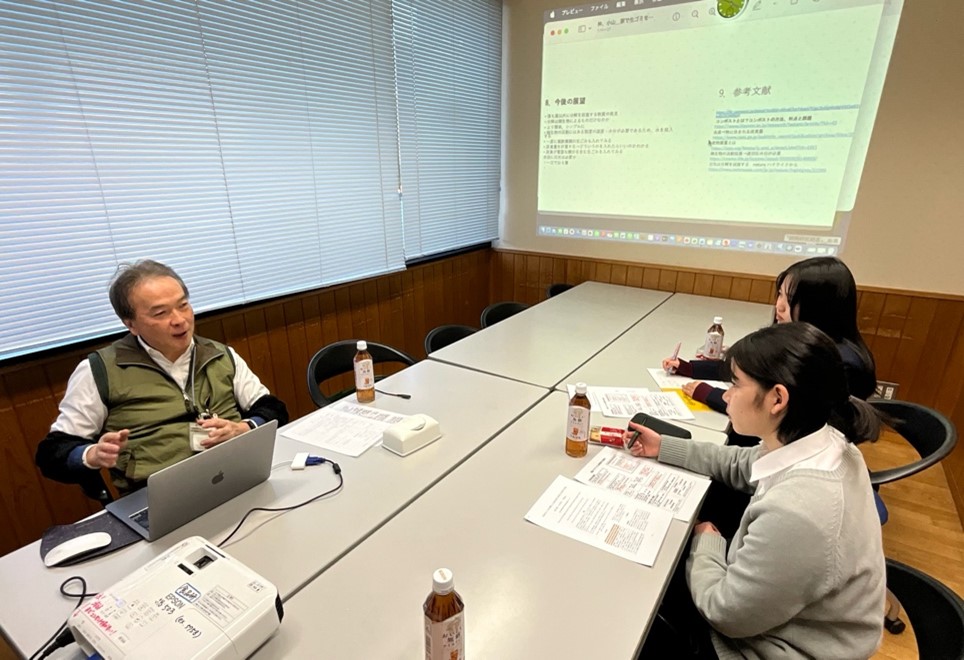 12月18日(木曜日)、「家庭でできるコンポストの提案」というテーマで研究する生徒のグループが、お茶の水女子大学生活科学部食物栄養学科の森光康次郎先生から助言をいただきました。