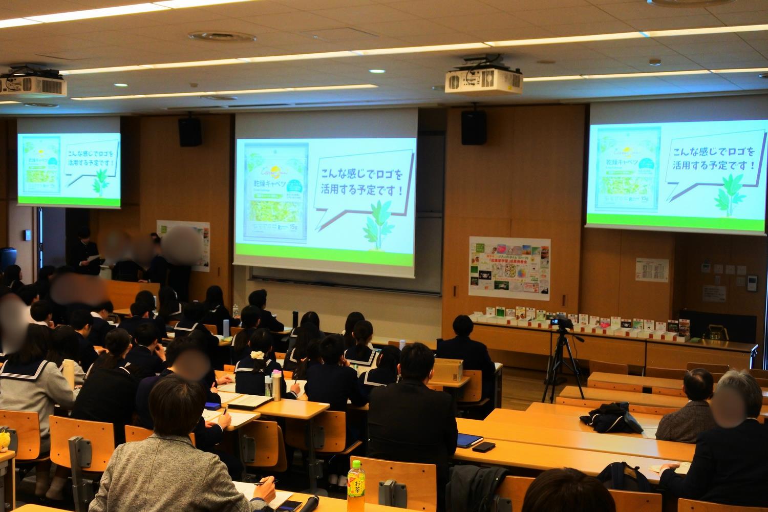 生徒たちは、リーダー、クリエイティブディレクター、マーケティング担当、財務・経営企画担当、技術・開発担当、広報・渉外担当に分かれ、それぞれが作成した、「コンセプトシート」「収支計画書」「プレスリリース」「企業ロゴ・ブランディング」「プロモーション動画」「プロトタイプ」などを発表に組み込みながら、「投資家」に向けて熱の入ったプレゼンテーションを行いました。どの「企業」の発表も大変素晴らしく、3年間の「ジブンゴトタイム」の集大成として、今まで学んできた成果を存分に披露することができました。